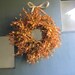 Hanging from a thin burlap Ribbon this small MINI Wreath is Perfect hanging from a shelf, cupboard, mirror or window. (12"-13" diameter --Pictured)