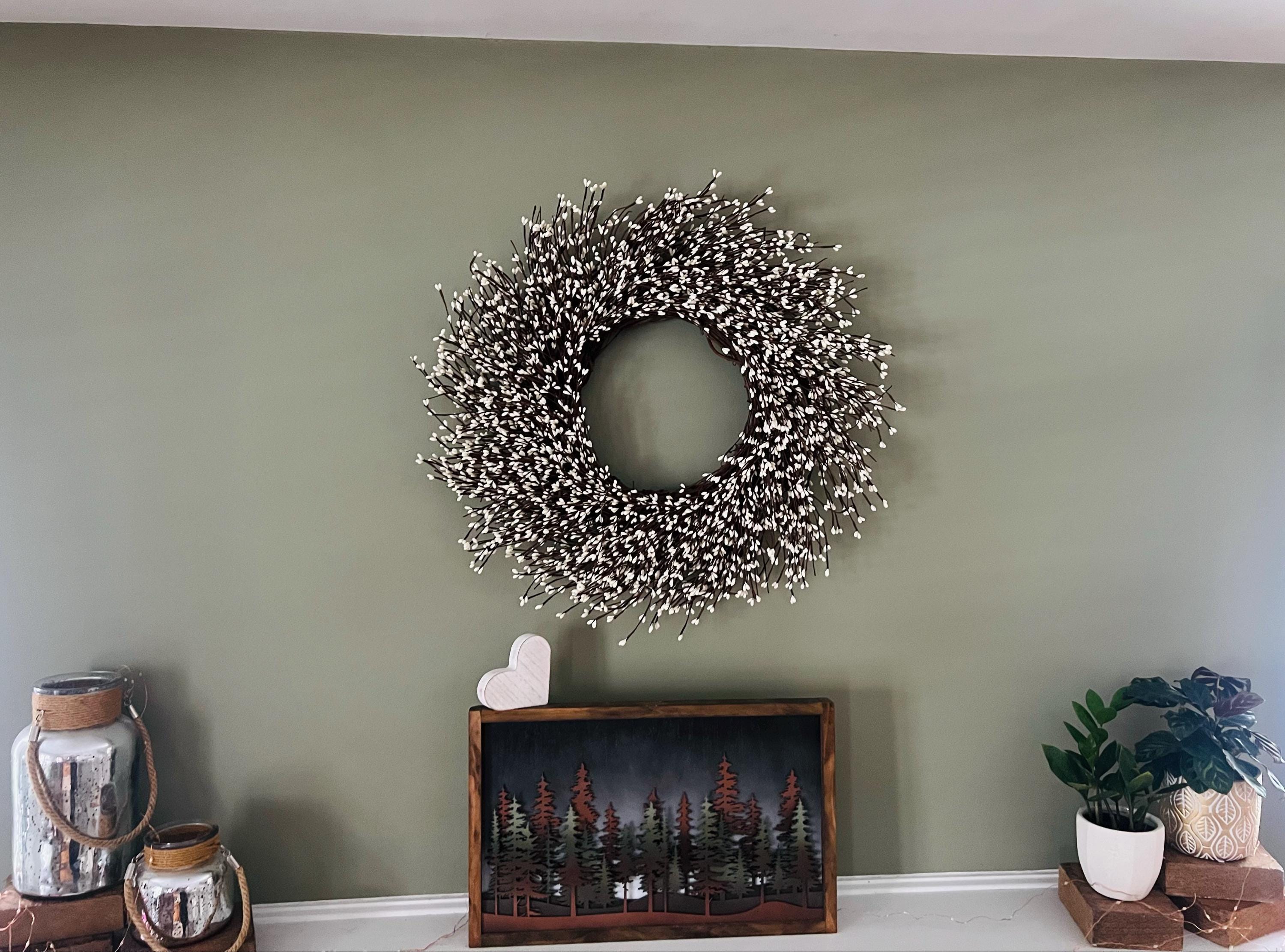 All measurements are the outer edge of the wreath tip to tip including the greenery or berries